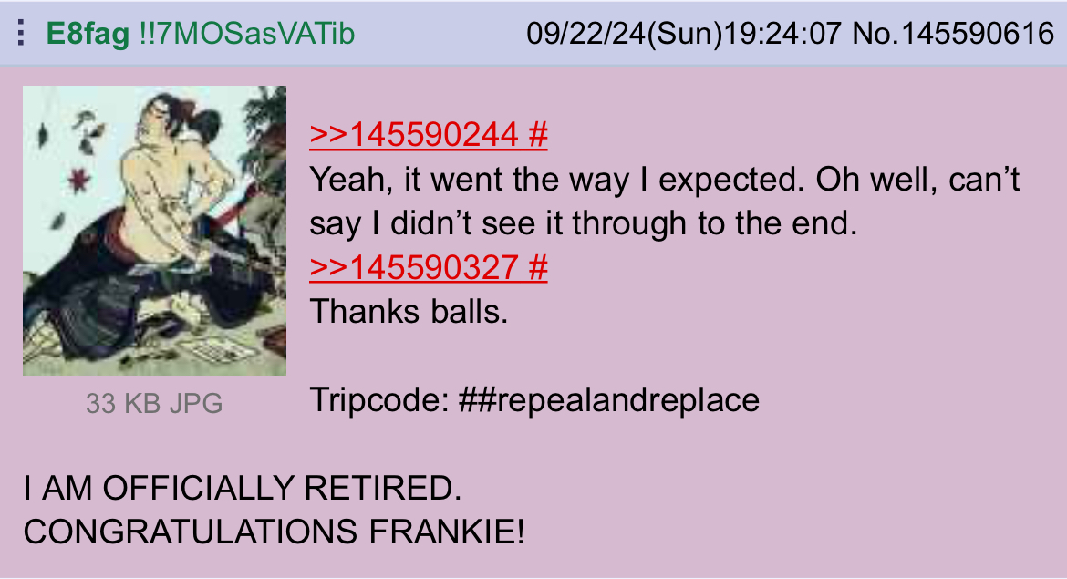 Granted, the big wedding meltie probably had some people more upset about the happeningfags running a joke into the ground by trying to catch lightning in a bottle twice (Ex: Assanon), but it was the perfect shitstorm to bitch about bullshit. A thread can't get that mad without genuine asshurt, trolling only goes so far. It's also why I don't buy the falseflag card whenever a contestant is out and immediate slander is thrown at the winner. People get pissed off for real.