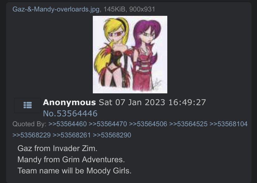 This board is for hosting tournaments and other organized competitions, be it either events, contests, or anything where a winner must be determined through votes or otherwise. Just for this board, image duplicates are enabled and the bump limits are set extra high. Roleplaying is encouraged, unless event hosts ask otherwise.