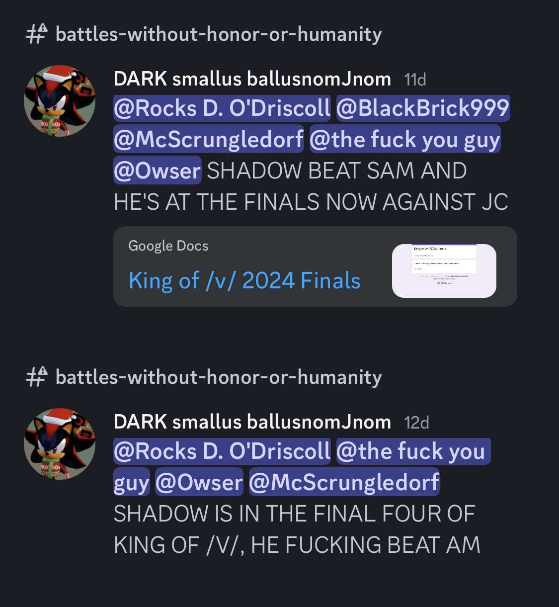 Games being a certified /v/ classic can only take you so far, anon. Memes and good campaigns go a long way. I guarantee you Shadow would have lost if it wasn't for all the autism and two /f/ pieces of art done to support him as the matches went.
