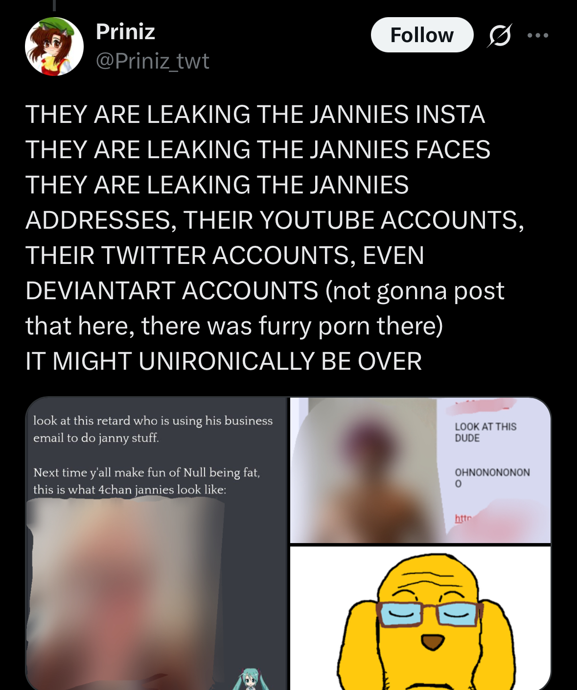 I believe most of the funposting against certain characters like Hex, AM, etc... is a janny hence why someone defended the dead site janitors for free on /baw/.