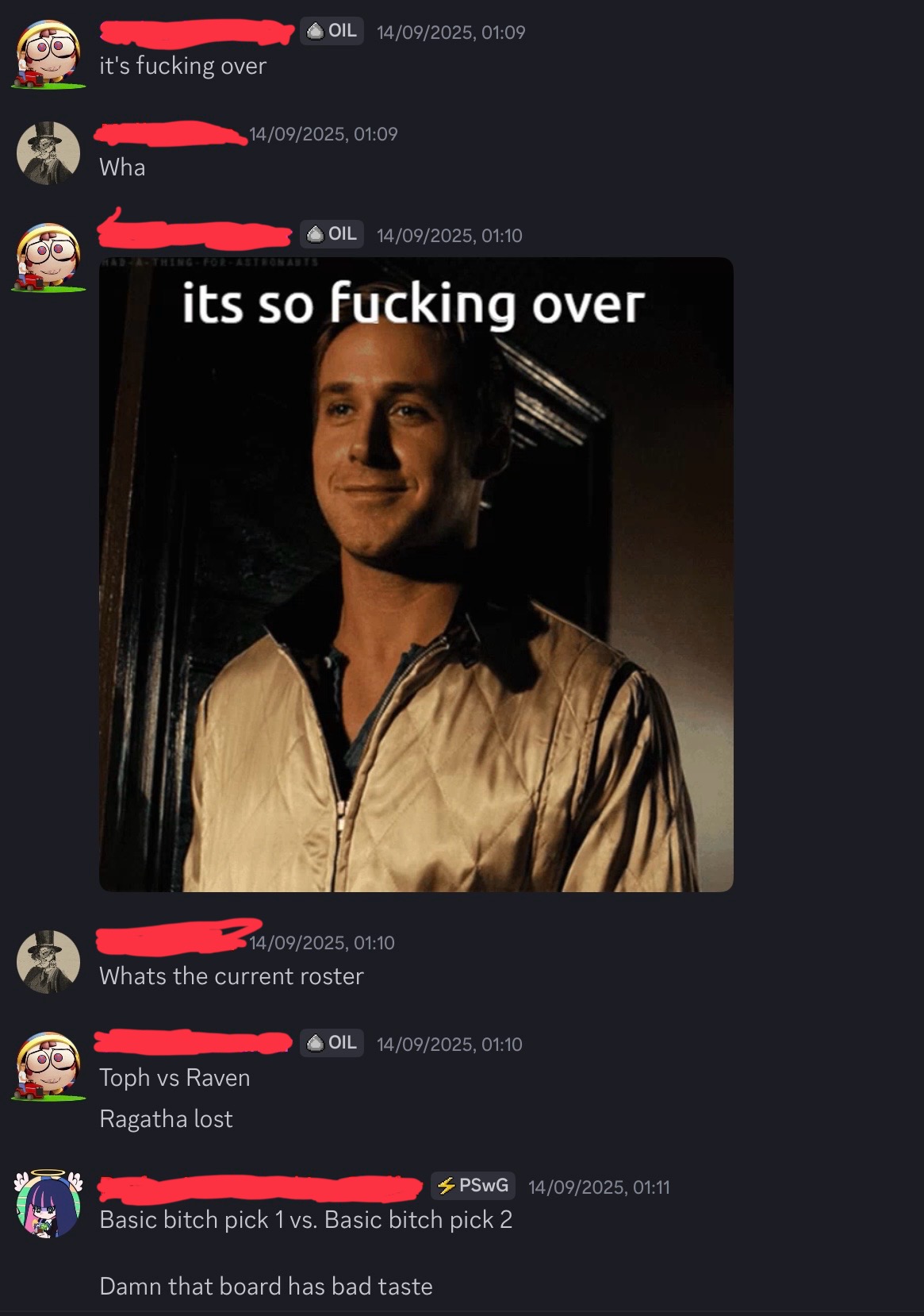 I was kinda around in the early days. I witnessed the Cap drama firsthand, was Martianposting in 2019, and have been really locked in since 2020. I don't think I regret any tournament event I've participated in, outside of generally regretting still posting on 4chan. I enjoy these things, even when they're shitty. They're events I actually want to take part in, rather than shit I'm doing to kill time, like posting on 4chan.