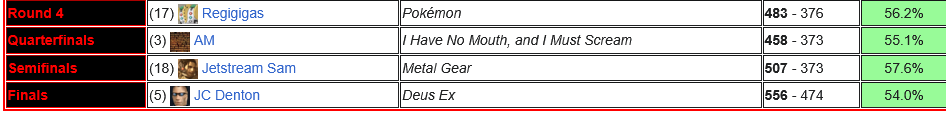 I think you fags seriously forget that you're voting for CHARACTERS in a CHARACTER tournament.
