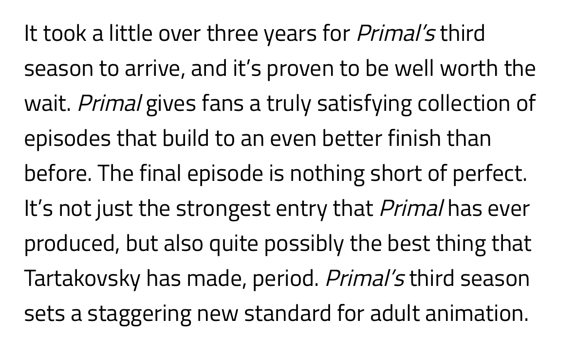 >Primal season 3 delivers a great ending