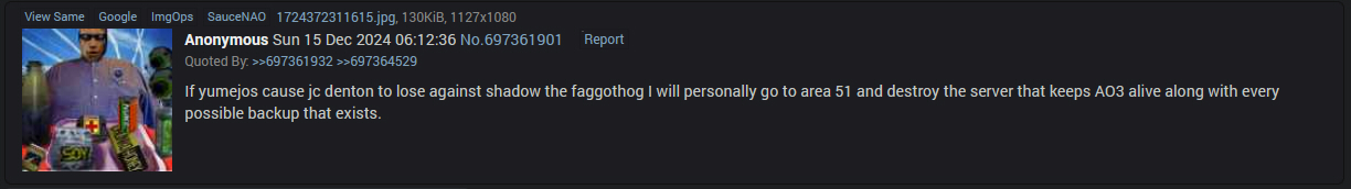 This board is for hosting tournaments and other organized competitions, be it either events, contests, or anything where a winner must be determined through votes or otherwise. Just for this board, image duplicates are enabled and the bump limits are set extra high. Roleplaying is encouraged, unless event hosts ask otherwise.