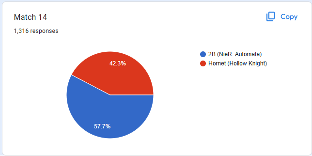 She's too one dimensional but then again Hornet doesn't have much going for her personality wise either. 9S is the star of Automata but king cowards are afraid of shota anyways and A2 is simply better.