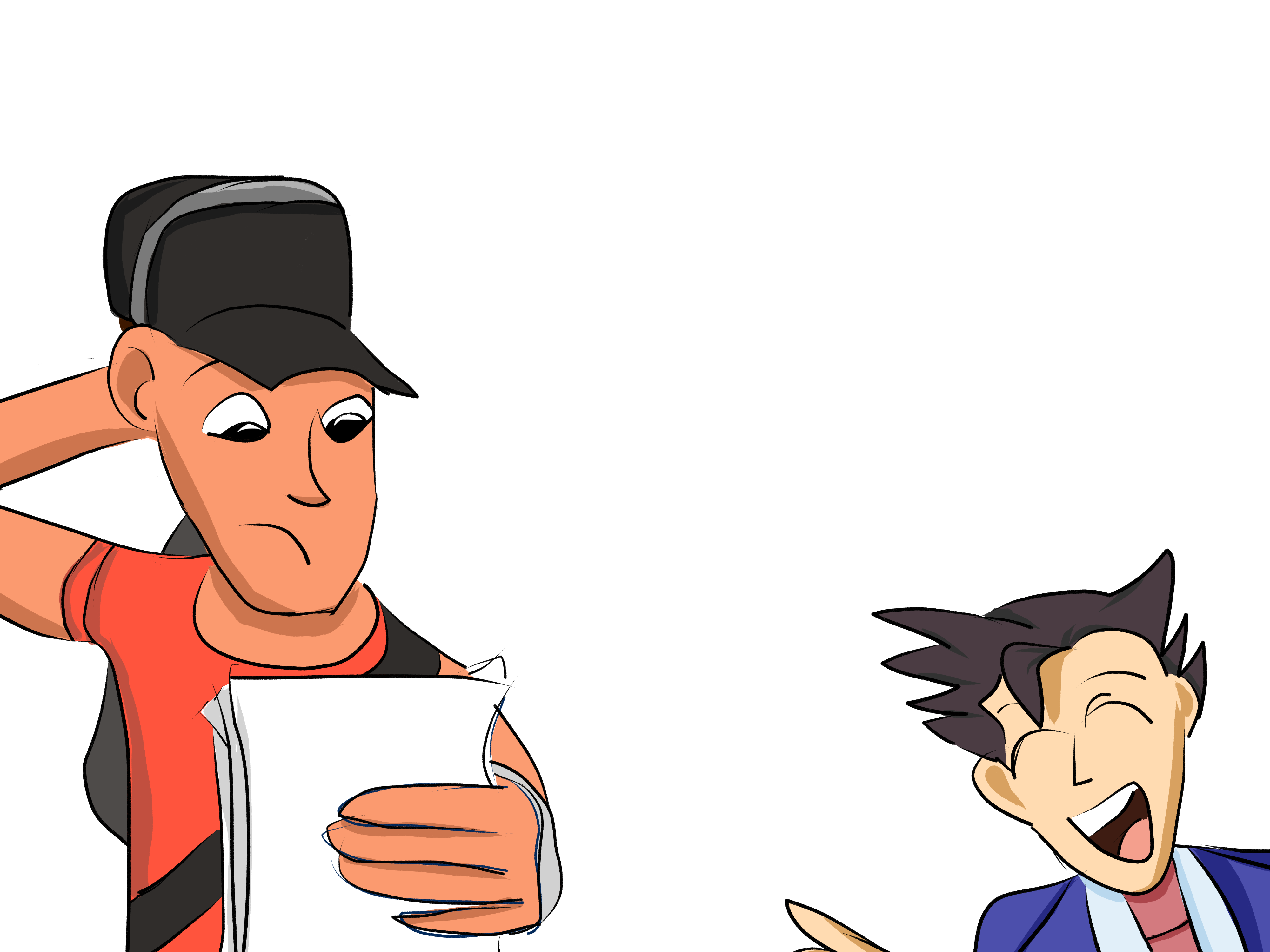 Image:176563183198.png(1.49MB, 4000x3000)Scout reading court documents while Phoenix laughs at him.png