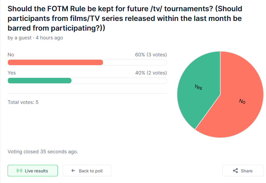Might as well make a thread for this here while I'm at it. A proper one, not just linking the polls within an older "waiting room" thread.