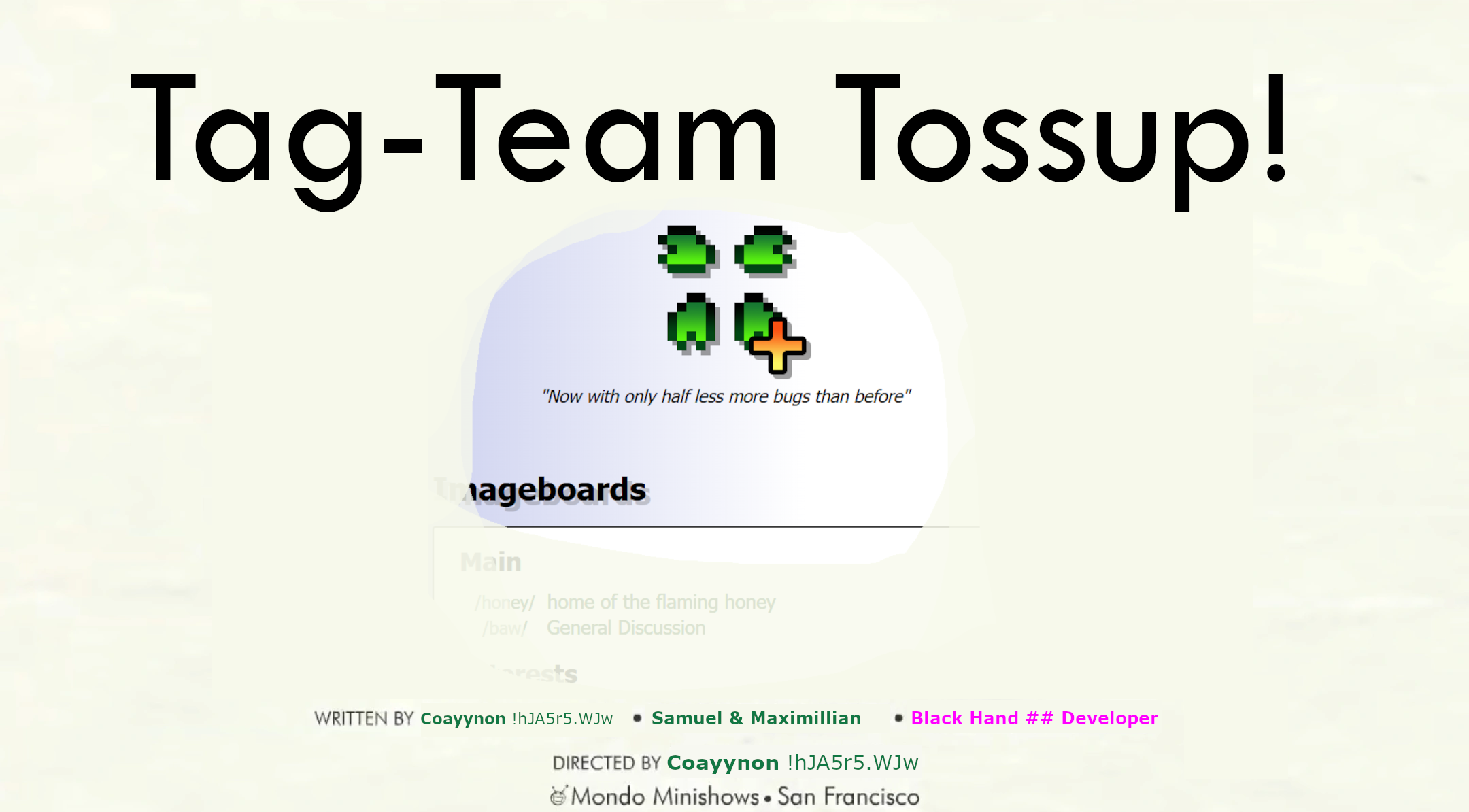 "No Meatwad. The Blue and Gold Team have legacy, which means they have a chance of beating us due to nostalgia from anons who clearly have way too much time in their hands and participate in them. Which means we must get the people to vote for us."