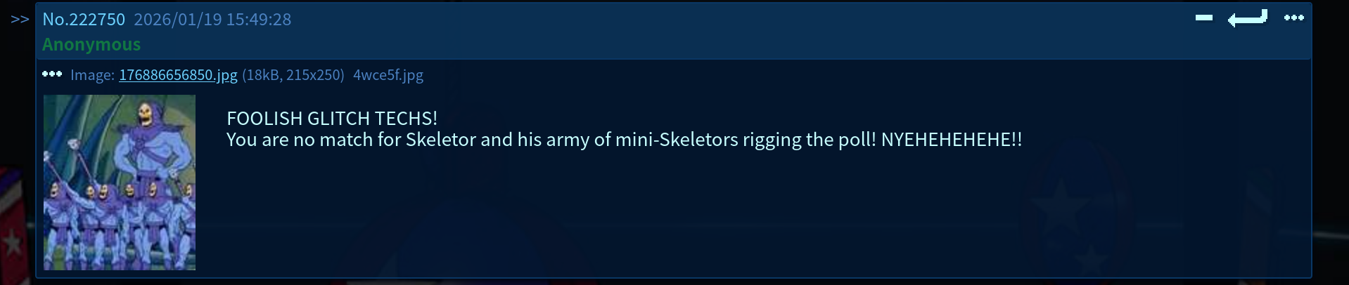 >Mini-Skeletor rigging only netted a 2 vote lead