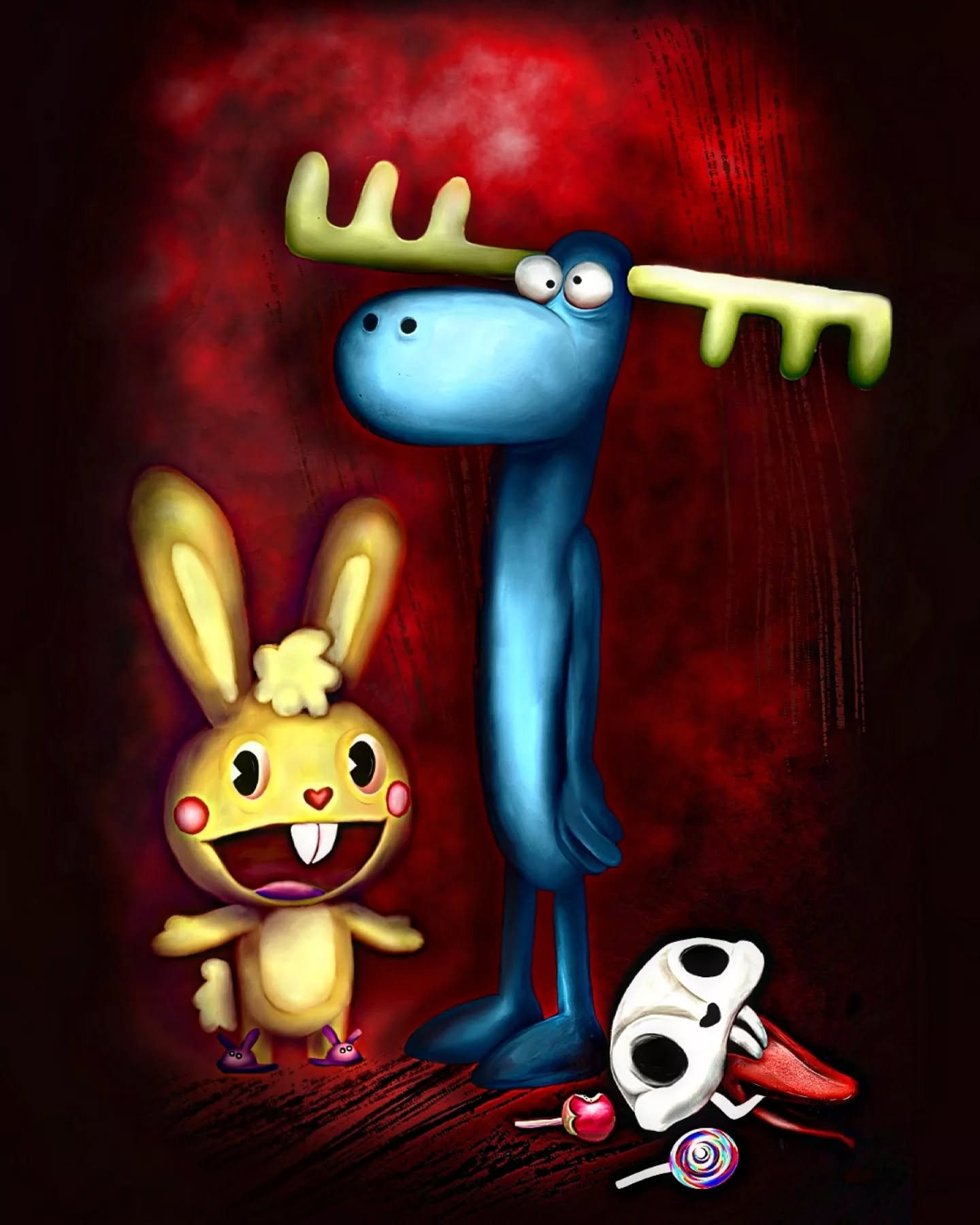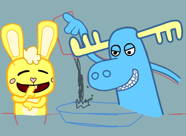 Lumpy and Cuddles celebrated their swift victory as they defeated the anthropomorphized reflection and her man. Not only that, but Lumpy even got a oneup on that Bullwinkle guy by proving he's the superior moose from making it farther.