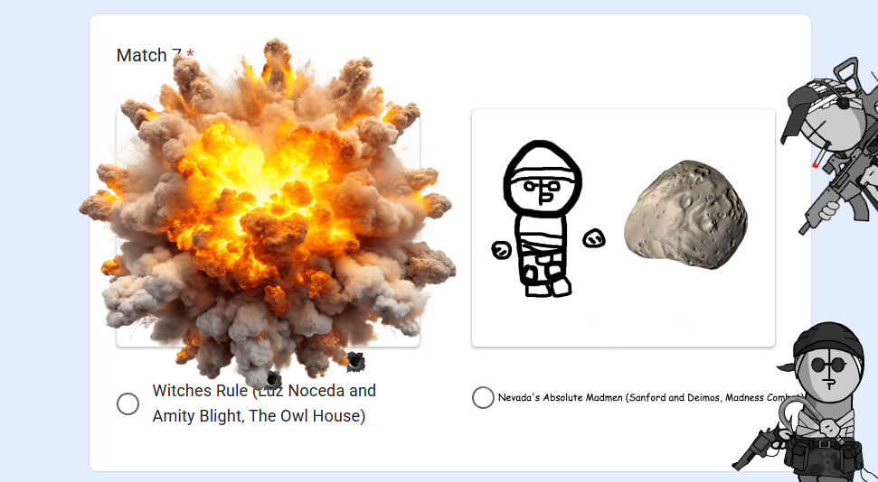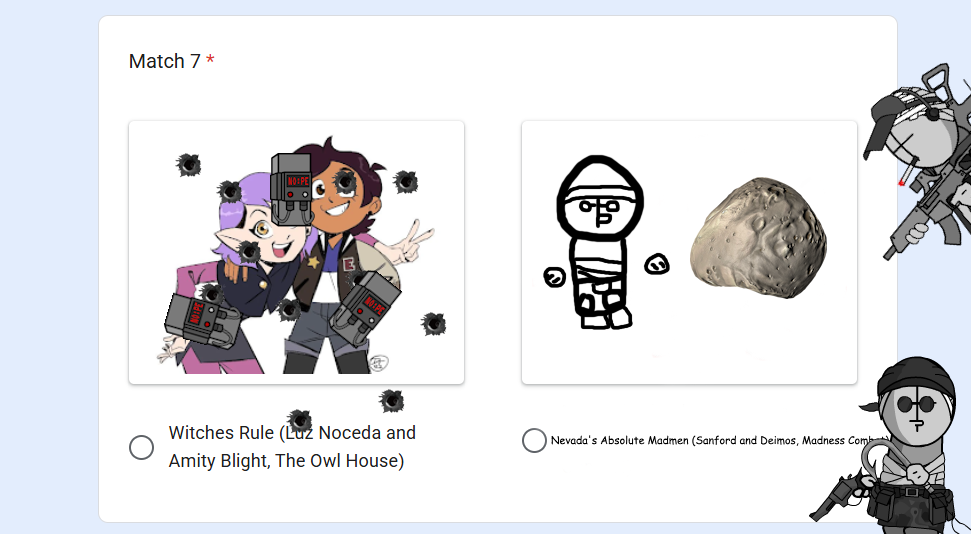 This board is for hosting tournaments and other organized competitions, be it either events, contests, or anything where a winner must be determined through votes or otherwise. Just for this board, image duplicates are enabled and the bump limits are set extra high. Roleplaying is encouraged, unless event hosts ask otherwise.