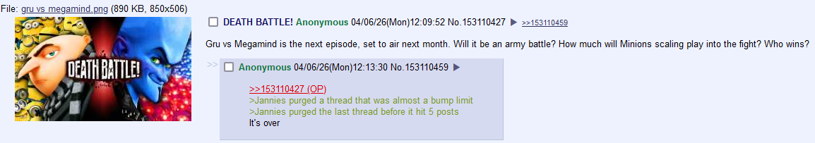 This board is for hosting tournaments and other organized competitions, be it either events, contests, or anything where a winner must be determined through votes or otherwise. Just for this board, image duplicates are enabled and the bump limits are set extra high. Roleplaying is encouraged, unless event hosts ask otherwise.