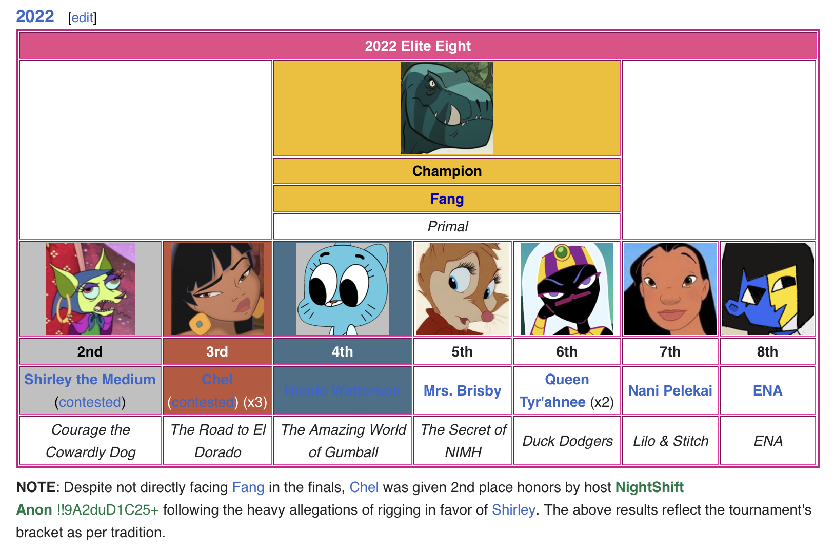 >The main wiki pages are already far behind, in some cases on up to date data and in notable characters there’s main tournament Elite8 characters who haven’t gotten their pages yet