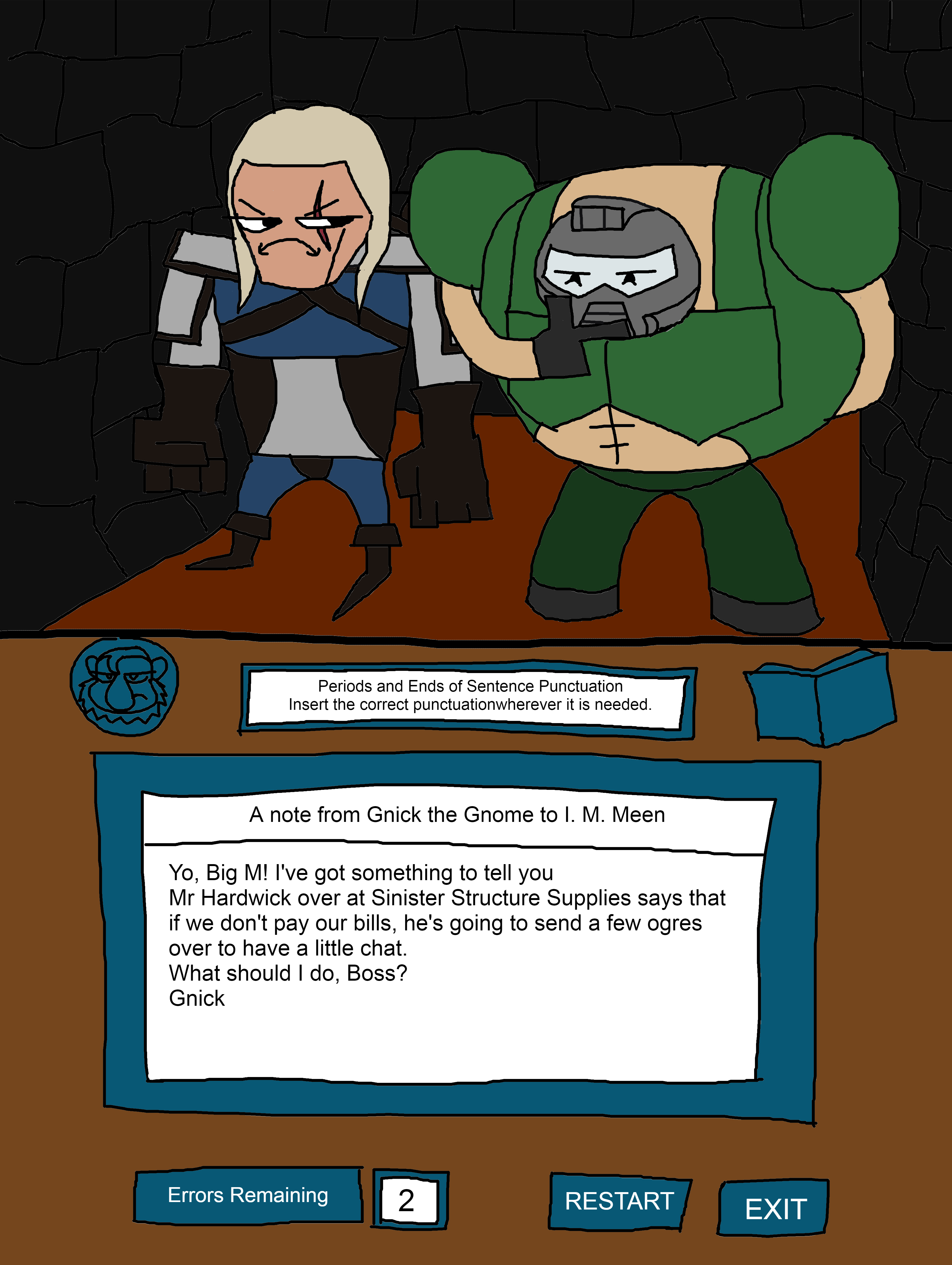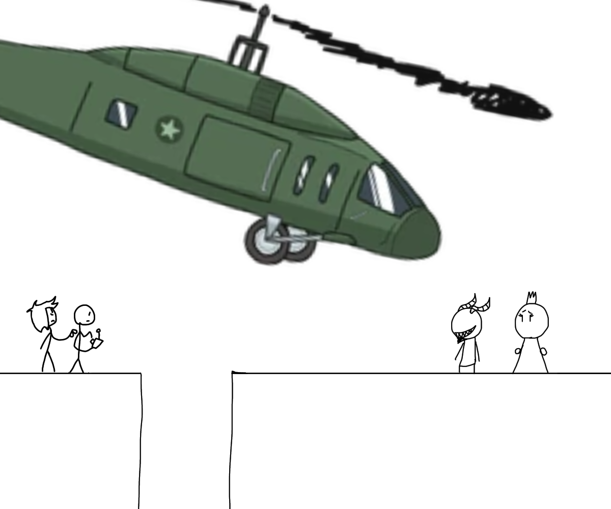 Look above us. An airship filled with more goons to shoot. Oh wait I see two officials on board! We got us a clown and some over dressed clown in medieval armor. Glad I got these babies on or my eyes will hurt from just lookin at em!